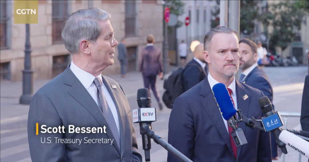 ▲中好意思经贸会谈后,贝森特和格里尔袭取记者发问。
